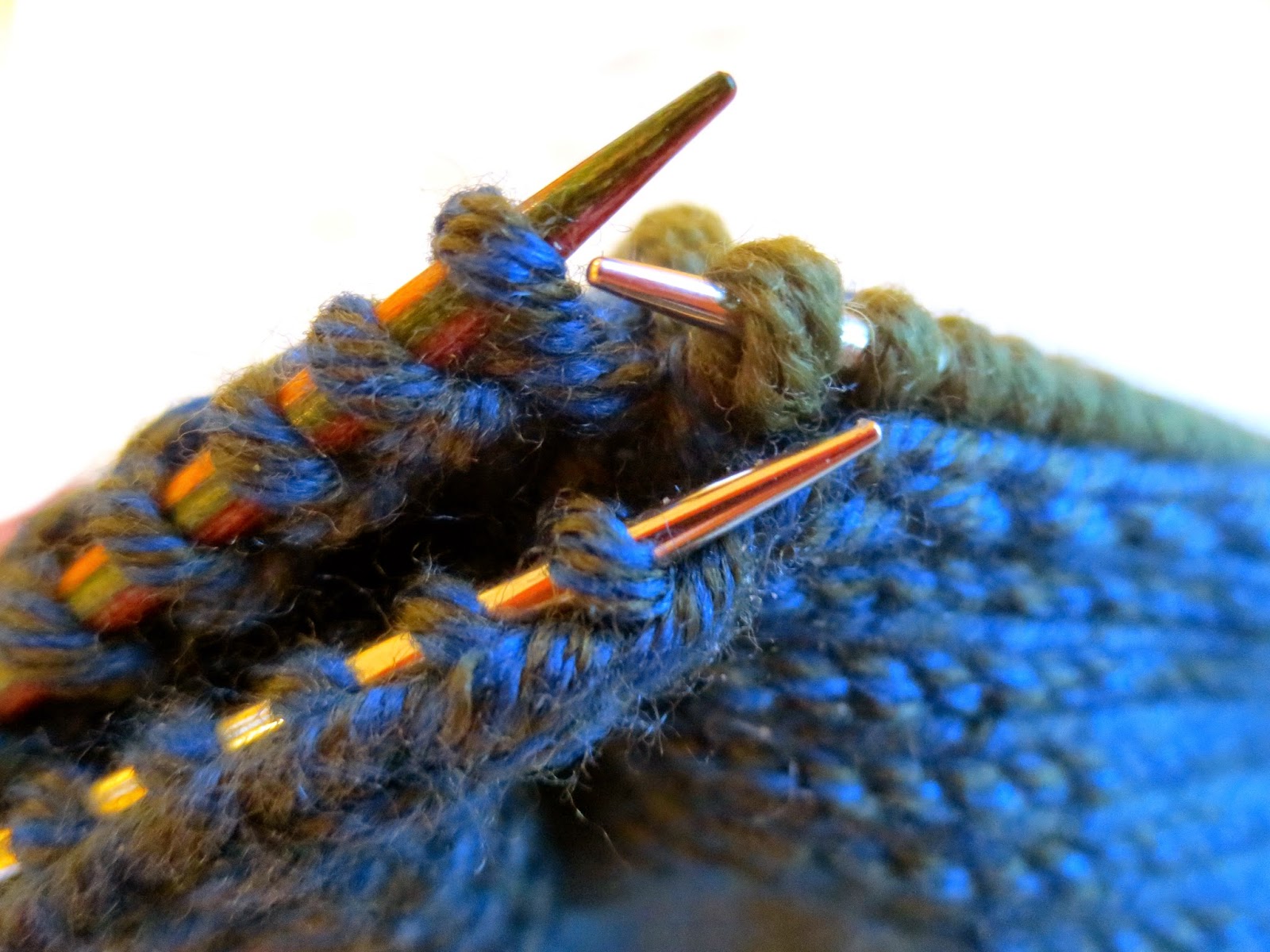 As with the previous two stripes, the pick up through the bound-off FLB is worked in the same color as the FLB. Before we go further, however, a little theory.Smoothing the decrease points--two tricks